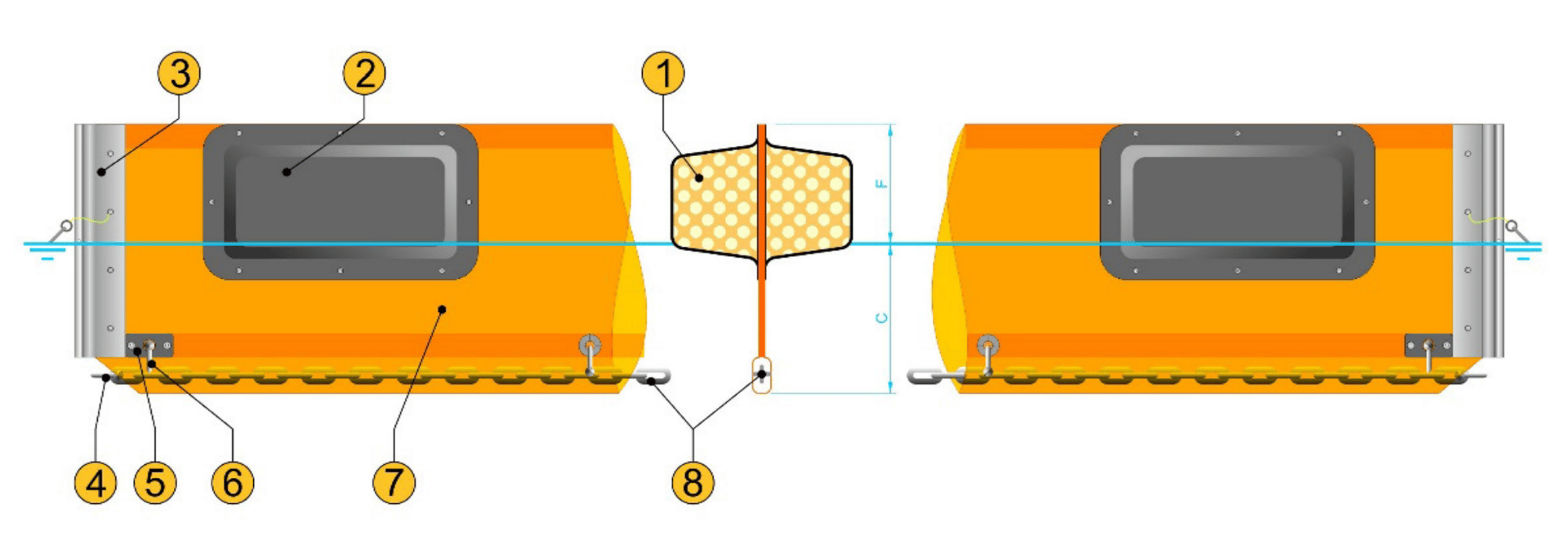 Maak kennis met onze veerkrachtige en duurzame permanente opvangdrijvers (ook bekend als permanente opvangbarrières), ontworpen voor langdurige inzet in maritieme omgevingen. Vervaardigd met technische uitmuntendheid, biedt deze drijver robuustheid en levensduur. De stijve met schuim gevulde drijvers, stevig bevestigd aan de natuurlijk stijve rok, zorgen voor een rechtopstaande stabiliteit in het water, terwijl een metalen ketting essentiële ballast aan de onderste rand biedt.